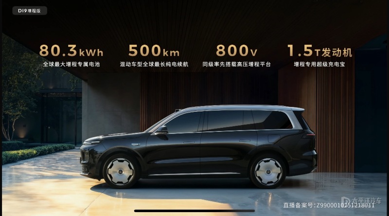 动力方面,零跑D19提供增程和纯电动力可选,其中增程版基于800V高压平台打造,搭载1.5T增程器,其中三电机版系统综合功率400千瓦,百公里加速4秒级,匹配容量为80.3千瓦时宁德时代电池组,CLTC纯电续航可达500km。