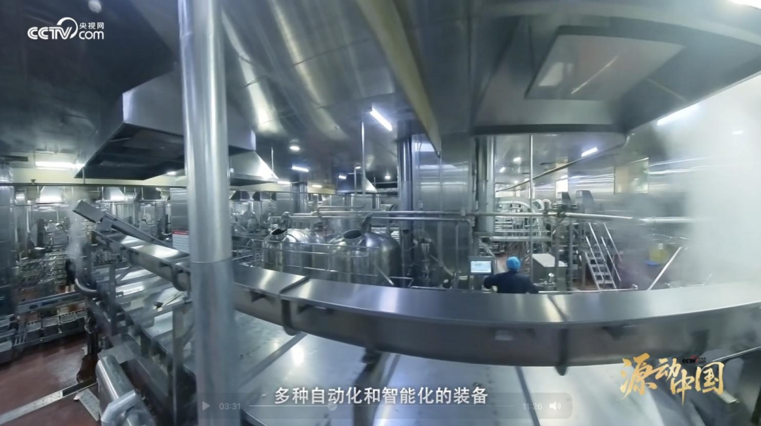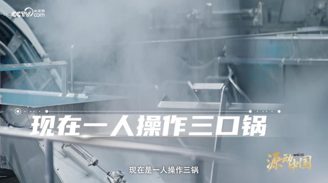 走到一排巨大的锅体前,主持人好奇地打量:"这个锅看起来不普通啊。" 王总点头道:"这是我们首创的自动卤制夹层锅,以前是人工熬制,一人看一口锅,现在是一人操作三锅,大大提升了生产效率。"